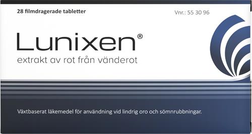Lunixen är ett växtbaserat läkemedel som innehåller vänderot, även kallad Valeriana, och används vid lindrig oro och sömnrubbningar. För vuxna och ungdomar över 12 år.