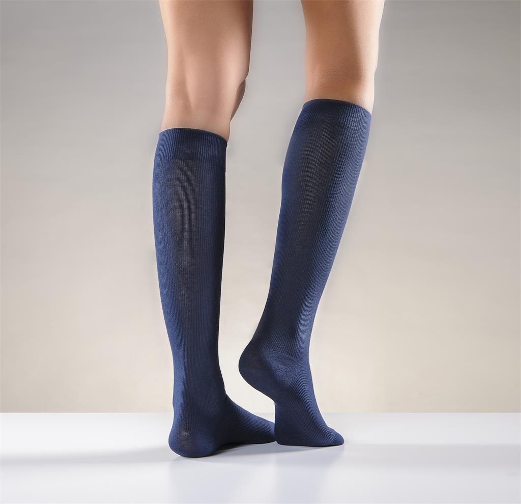 Mabs Bomull är en mjuk och skön kompressionsstrumpa med hög andel bomull som passar för både kvinnor och män. Mabs Bomull är av kompressionsklass 1 (15-21 mmHg) och har en graderad kompression som är högst vid ankeln och avtar sedan upp mot knät. Kompressionsstrumpan ökar blodflödet i benen så att du kan känna dig pigg i benen hela dagen oavsett om du står, går eller sitter mycket. Kompressionsstrumpan motverkar även åderbråck. Passar både för herr och dam. Välj rätt storlek: För att passformen skall bli perfekt finns det tre mått du bör utgå ifrån, skostorlek, omkretsen runt ankeln där den är som smalast och omkretsen runt vaden där den är som bredast. Måtten skall tas direkt på morgonen innan benen/fötterna svullnat. Vik aldrig ner den övre strumpkanten, det ger en felaktig tryckfördelning och därmed ej avsedd effekt.