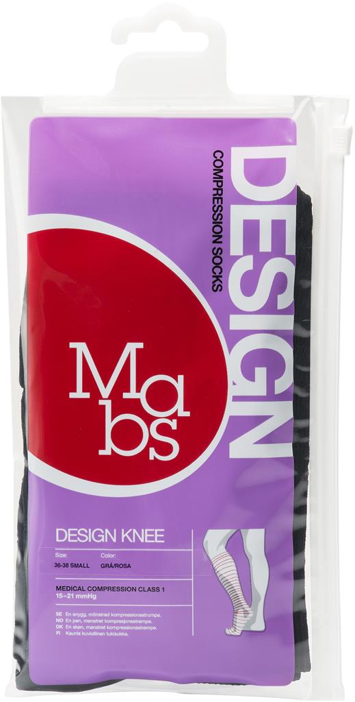 Mabs Design är en kompressionsstrumpa med snygg design som förebygger åderbråck, trötta och svullna ben. Strumporna har en graderad kompression från ankeln och upp mot vaden vilket ökar blodcirkulationen i benen. Strumporna är CE märkta som medicinska kompressionsstrumpor klass 1, 15-21 mmHg.