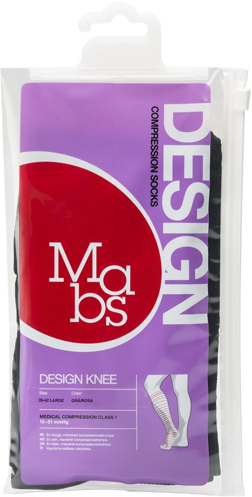 Mabs Design är en kompressionsstrumpa med snygg design som förebygger åderbråck, trötta och svullna ben. Strumporna har en graderad kompression från ankeln och upp mot vaden vilket ökar blodcirkulationen i benen. Strumporna är CE märkta som medicinska kompressionsstrumpor klass 1, 15-21 mmHg.