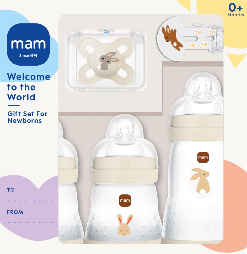En presentförpackning som är perfekt som gåva! Förpackningen innehåller ett bra startkit med MAM produkter för nyfödda.Innehållande:2x Easy Start 160 ml 1x Easy Start 260 ml 1x MAM Start 1x MAM Clip
