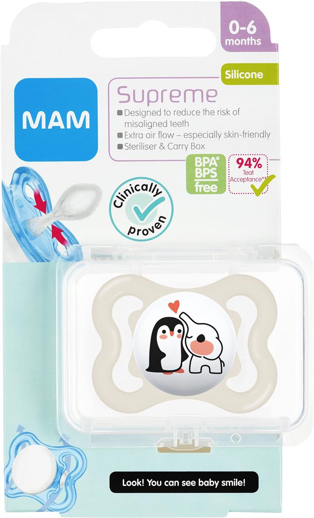 MAM Supreme, med 60% tunnare sugdel än vanliga sugnappar, är utvecklad