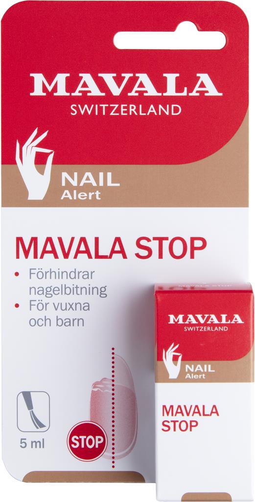 Mavala STOP är ett ofärgat nagellack med en skarpt bitter smak, för att avskräcka från att stoppa fingrarna i munnen.