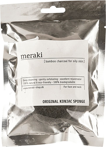 Meraki Konjac Sponge Bamboo Charcoal är en naturlig tvättsvamp gjord av 100 % naturliga, vegetabiliska silkesfiber från konjakroten. Vid daglig användning återfår huden sin naturliga mjukhet och lyster. Meraki Konjac Sponge Bamboo Charcoal lämpar sig extra bra till fet och oren hud. Aktivt kol absorberar talg och läker inflammationer.