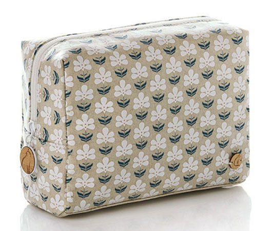 En necessär I en klassisk modell som möter Miomojos exklusiva mönster. Necessären har en ficka med dragkedja samt två mindre öppna fack inuti. Den är tillverkad av linne, bomull med en yta av syntet.
