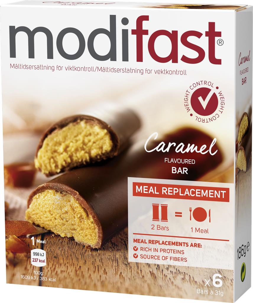 Modifast Low GI Bars klassas som måltidsersättning och kan ersätta en eller ett par måltider per dag. Finns i 2 goda smaker, Choklad och Karamell. Modifast Low GI bars har ett GI värde på 20. Två Modifast Bars motsvarar tillsammans en fullvärdig måltid och ger 240 kcal.