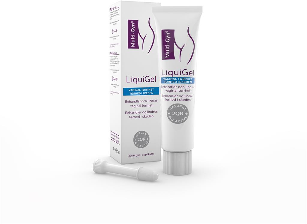 Gelen innehåller 2QR (bioaktiva polysackarider) som kan neutralisera oönskade bakterier och stärka de egna mjölksyrebakterierna, Betain som stimulerar den egna naturliga fuktproduktionen i slidans slemhinna, Glycerin som ger fukt samt Xanthan Gum som ger en god vidhäftning och fungerar som bas i gelen   Multi-Gyn LiquiGel kan användas vid torrhet på de yttre könsorganen (vulva och blygdläppar) samt inuti slidan med hjälp av den medföljande applikatorn.   Kan användas vid graviditet och amning   Förvara produkten i rumstemperatur, bäst före datum finns angivet på tuben och förpackningens undersidaMulti-Gyn LiquiGel är en medicinteknisk produkt klass 2 för behandling av vaginal torrhet. Innehåller: Galatoarabinan Polyglucoronic Acid Crosspolymer*, Glycerin, Betain, Xanthan Gum* Patenterade bioaktiva polysackarider som tas fram genom molekylär filtration av en specifik Aloe Barbadensis planta
