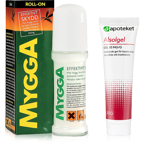 Sommarkväll, solnedgång och vindstilla. Men det räcker med en enda mygga för att förstöra idyllen. MyggA är effektivt mot mygg, knott och andra skyddande insekter, så att du kan koppla av. Och Alsolgel stillar klåda, rengör och är milt uttorkande om du ändå får ett stick.
