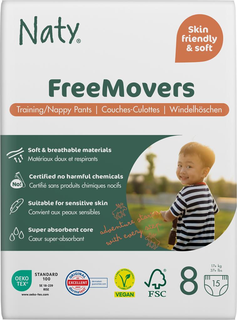 Naty byxblöjor FreeMovers i storlek 8 (17+ kg) ger en hög