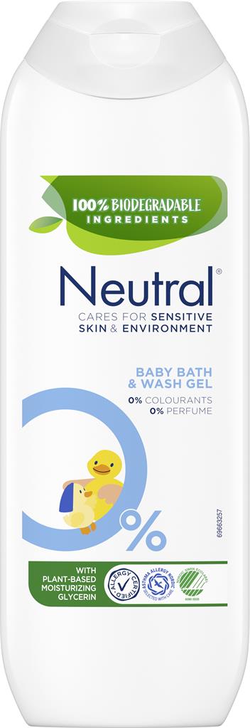 Neutral Shower Gel Baby Parfymfri är en mild, fuktgivande och effektiv duschtvål som är speciellt framtagen för känslig hud och för en skonsam rengöring av barns hud.   Duschkrämen fungerar även till skumbad. Den är mild, dermatologiskt testad och lämplig för daglig användning.   Formulan är fri från parfym, färgämnen och alkohol, vilket minskar risken för allergiska reaktioner och irritation på huden. Mindre irritation och färre reaktioner betyder minskad risk för tårar. Att bada och tvätta ditt barn har aldrig varit enklare med hjälp av vår vårdande duschtvål.   Den ger ditt barn komfort och skyddar barnet från starka kemikalier. Bara de ingredienser som behövs är med. Och de som inte behövs är bortplockade, de som kan irritera huden.   Vill du även tvätta ditt barns hår och känna dig lika trygg som med duschtvålen, kan vi rekommendera Neutral Baby Hair Shampoo. För att bevara fukten i ditt barns hud efter badet är det lämpligt att använda Neutral For Sensitive Skin Baby Cream eller  . . OK för gravida och ammande: Ja Ingredienser:Aqua, Sodium Laureth Sulfate, Disodium Cocoamphodiacetate, Cocamidopropyl Betaine,  Sodium Chloride, Glycerin, Citric Acid, Sodium Lactate, Sodium Benzoate.