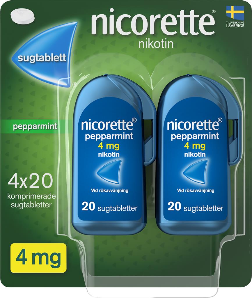 Nicorette Pepparmint 4 mg sugtabletter är lämpliga för rökare med ett högt nikotinberoende, till exempel de som röker dagens första cigarett inom 30 minuter efter uppvaknandet eller röker mer än 20 cigaretter om dagen. Detta läkemedel kan hjälpa dig att sluta röka tvärt eller att trappa ned på rökningen innan du slutar helt. Läs alltid bipacksedeln noga eller gå in på fass.se för mer information.