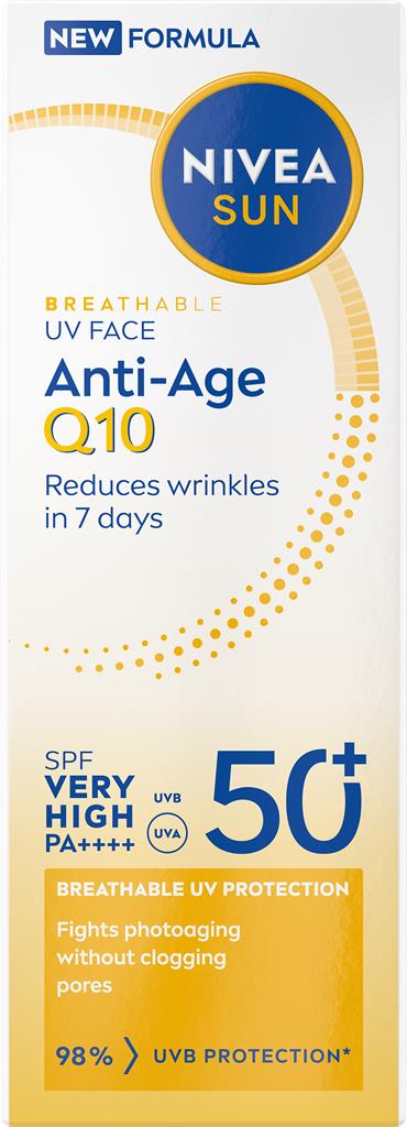 är icke-komedogen och oftalmologiskt godkänd NIVEA UV Face Anti-Age Q10 SPF 50+