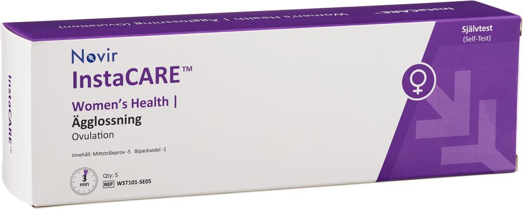 "InstaCARE Ägglossningstest är ett enkelt och smidigt självtest för att mäta LH i urinen. LH (luteiniserade hormoner) är det hormon som utlöser ägglossningen. Testet identifierar om man befinner sig i en fertil fas av menscykeln med sannolikhet att kunna bli gravid. Använd testet med fördel för att även förstå din menscykel.    Tillförlitlighet >99%  Antal test i förpackning: 5st  Svarstid: inom 3 min"