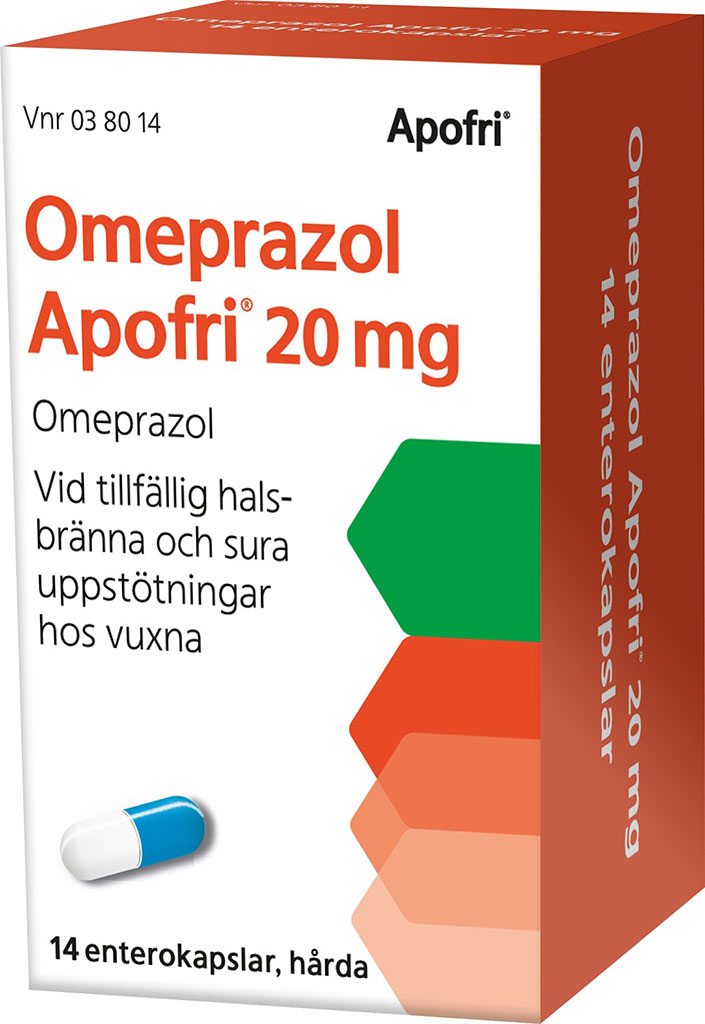 Omeprazol Apofri används hos vuxna för korttidsbehandling av refluxsymtom (till exempel halsbränna och sura uppstötningar). Omeprazol är ett läkemedel som ingår i en grupp av läkemedel som kallas ”protonpumpshämmare”, som hämmar produktionen av magsyra. Syrautsöndringen minskar inom 2 timmar och effekten håller i upp till 1 dygn.  Läs alltid bipacksedeln noga eller gå in på fass.se för mer information.