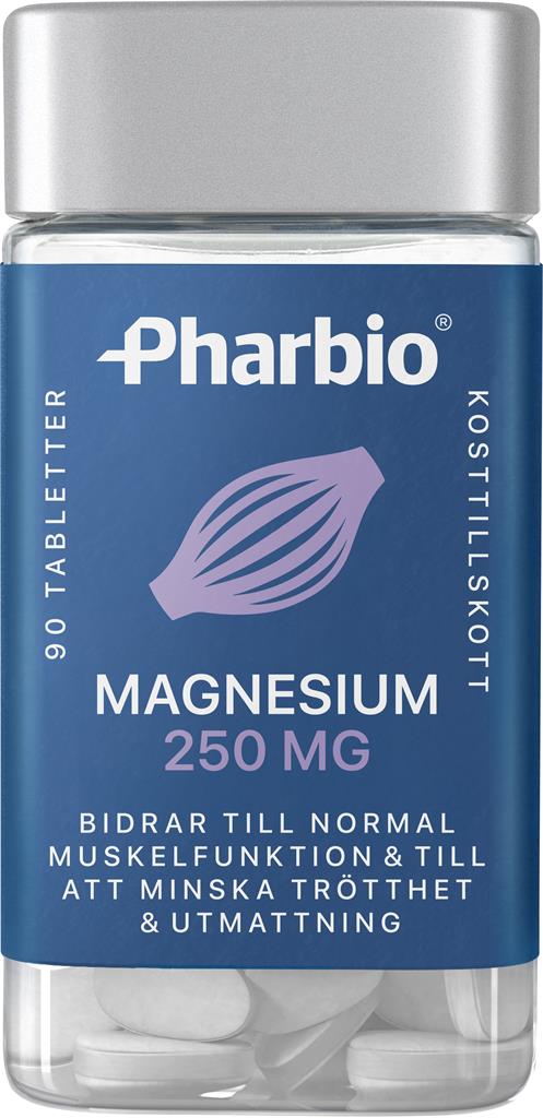 Pharbio Magnesium 250 mg är ett kosttillskott i tablettform som ger 250 mg magnesium per tablett. Magnesium bidrar till normal muskelfunktion och till nervsystemets normala funktion. Tabletten har en mandelform som är framtagen för att vara enkel att svälja.