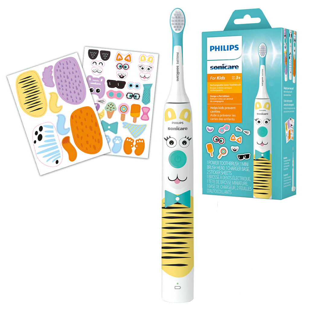 Tandborsten använder Sonic-teknik som i kombination med borströrelser skonsamt avlägsnar plack och fläckar. Den medföljande “Designa ett husdjur-utgåvan” innehåller roliga klistermärken som gör tandborstningen till en lekfull upplevelse.
