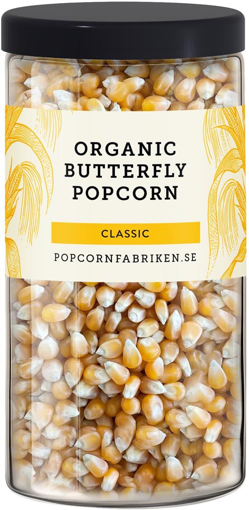 Organic Butterfly Popcorn Classic är ekologiska popcornkärnor från gul majs.