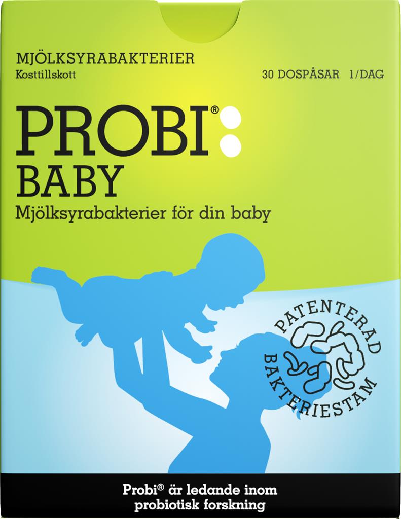 Probi® Baby är mjölksyrabakterier för familjens yngsta. Probi Baby är ett kosttillskott som innehåller den patenterade och kliniskt dokumenterade mjölksyrabakteriestammen Lactobacillus rhamnosus 271. Det finns klinisk data på barn från 10 dagars ålder.