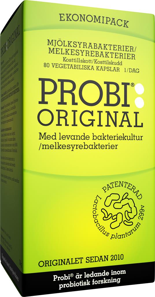Probi Original innehåller den patenterade och väldokumenterade mjölksyrabakterien Lactiplantibacillus plantarum 299v (LP299V®). Denna bakterie är ett resultat av drygt tjugo års svensk forskning och har genomgått ett sextiotal kliniska studier och är nu patenterad i hela världen. Den har kliniskt visat förmågan att överleva matsmältningspassagen och stanna kvar i tarmen. Varje kapsel innehåller minst 10 miljarder bakterier.