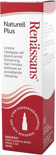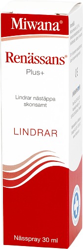 Renässans Plus används för att lindra tillfällig nästäppa som uppkommit p g a förkylning, allergi, graviditet eller andra orsaker. Kan minska behovet av slemhinneavsvällande läkemedel.
