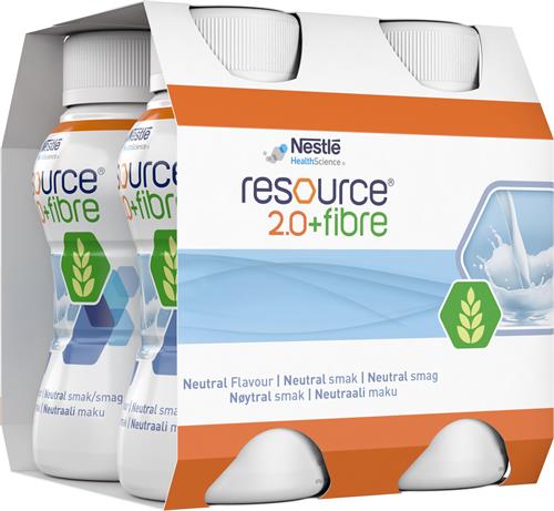 Resource 2.0+fibre är avsedd för kostbehandling av sjukdomsrelaterad undernäring. Ett bra val för undernärda patienter som har svårt att äta och dricka stora volymer t.ex. vid KOL, cancer, geriatriska nutritionsproblem eller hjärtsvikt. Intas lämpligen som mellanmål och gärna fördelat i små portioner under dagen. Används på inrådan av läkare eller dietist. Drycken är lämplig för vuxna och barn över 3 år.