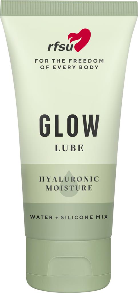 RFSU Glow Lube är ett hybridglidmedel som ger extra fukt och ett mjukt, följsamt glid. Formulan innehåller hyaluronsyra och sheasmör som hjälper till att bevara hudens mjukhet och skapa ett silkeslent skyddande lager. Sammansättningen håller längre än traditionella vattenbaserade glidmedel och passar både känslig hud och användning vid torra slemhinnor. Produkten är gynekologiskt testad, 100% vegansk och certifierad av The Vegan Society.