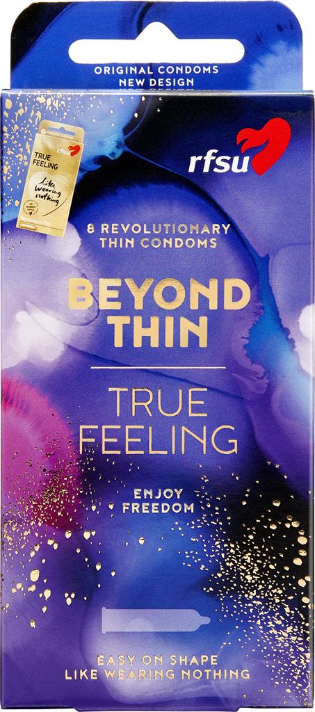 FRSU True Feeling är sensationellt tunna kondomer som ger en optimal, hudnära, naturlig och skön känsla. True Feeling är luktfria, glidmedelsbehandlade, har en rak passform, slät yta och är lätta att rulla på.