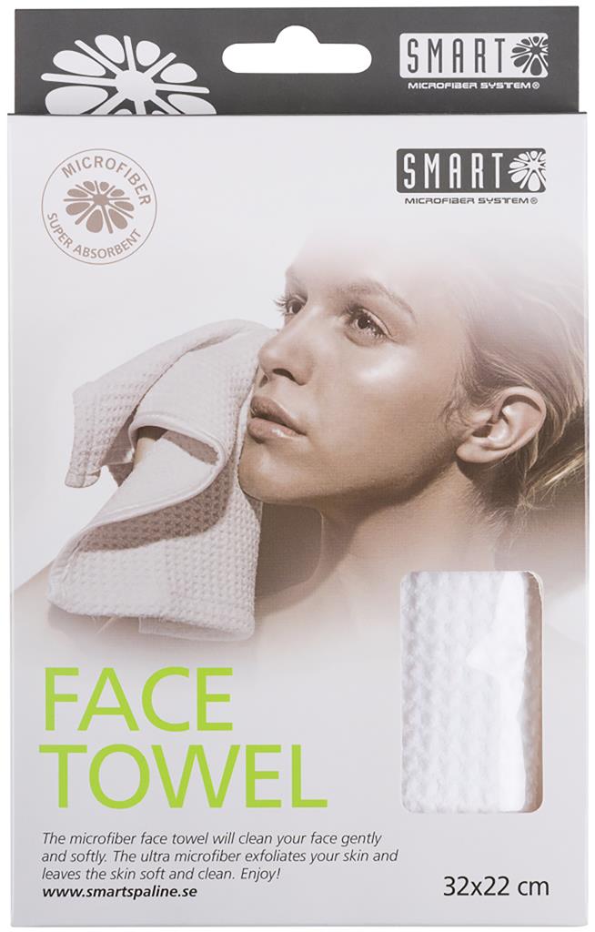 Den har en våfflad yta som ger en skonsam exfoliering av huden. Smart Facetowel