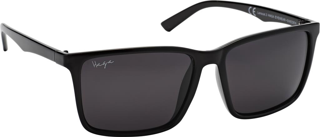 Haga Optiks solglas är CE-märkta, 100% UV-skydd och anti-nickelbehandlade. Darwin Shiny Black är en klassisk unisex-modell i färgen blank svart och grå lins.    Används för att skydda ögonen från solens strålar    Förvara gärna produkten i ett fodral när den inte används för att skydda den från repor och onödigt slitage.    OK för gravida och ammande:   Ja    Ingredienser:  Båge, lins, näsdel och skalmtopp i polycarbonat. Alla metalldelar är antinickelbehandlade.