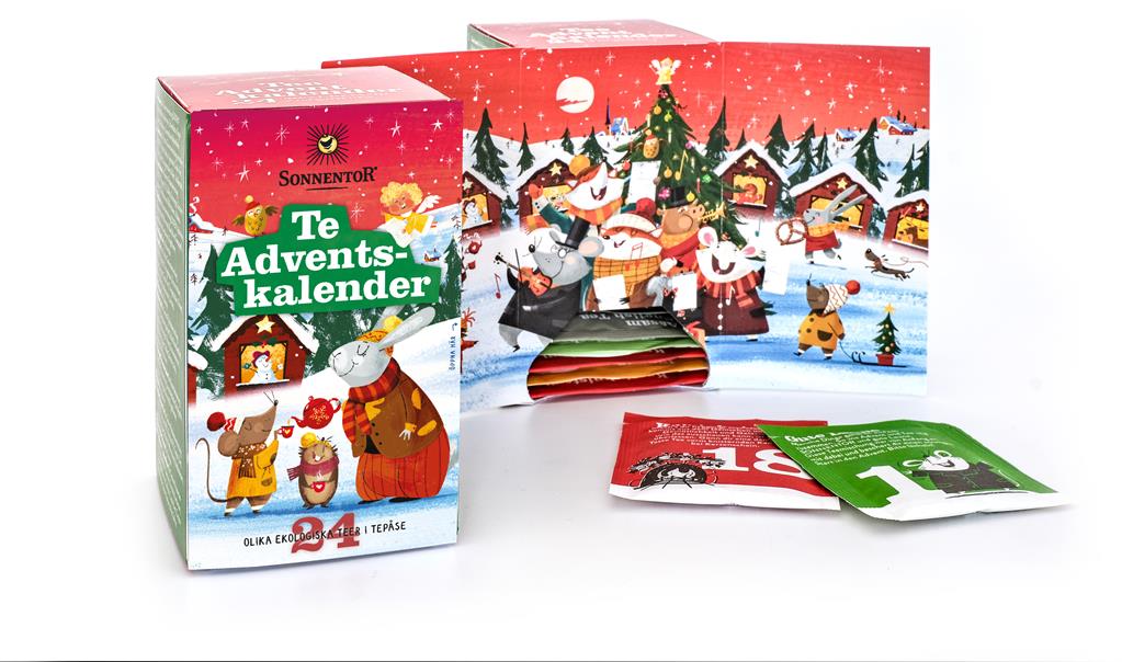 Räkna ner dagarna till jul med Sonnentors ekologiska te-adventskalender. Var dag bjuder på ett nytt te, och teasken går att fälla ut till en söt bordsprydnad.