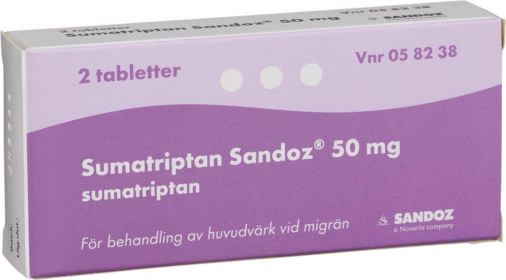 - Rekommenderad dos för vuxna 18–65 år är en Sumatriptan Sandoz 50 mg tablett.