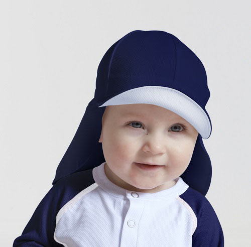 Solkepsens skärm och det förlängda tygstycket i nacken skyddar babyns ansikte, öron och nacke. Den är mjuk och skön att ha på även under tuppluren i vagnen. UV-kepsen är snabbtorkande, sval och luftig samt salt- och klorbeständig. Solkepsen finns i matchande färger till Sun Seal Soldräkt.