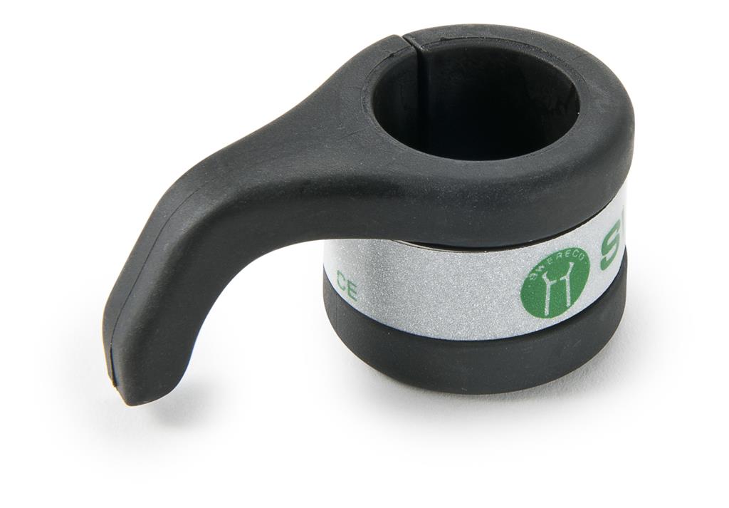 Tillverkad av en mjuk plast med fjäderstål runt om vilket gör att den passar många olika dimensioner av rör. Den passar diameter 17,75-22,5 mm.