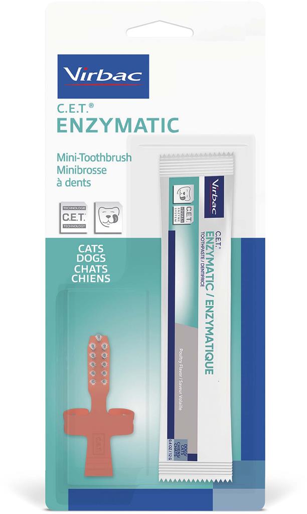 Tandhygien kit innehållande 12 g enzymatiska tandpastan med kycklingsmak samt fingertandborste, specialanpassad för små hundar och katter. Den enzymatiska tandpastan med mycket hög smaklighet og med patenterat enzymsystem är specialframtaget till hund och katt. För att underlätta tandborstningen är det viktigt att komma igång medtandborstning redan vid en tidig ålder, innan problemen uppstår. Detta kit är specialframtaget för att underlätta tandborstning hos valpar och kattungar.