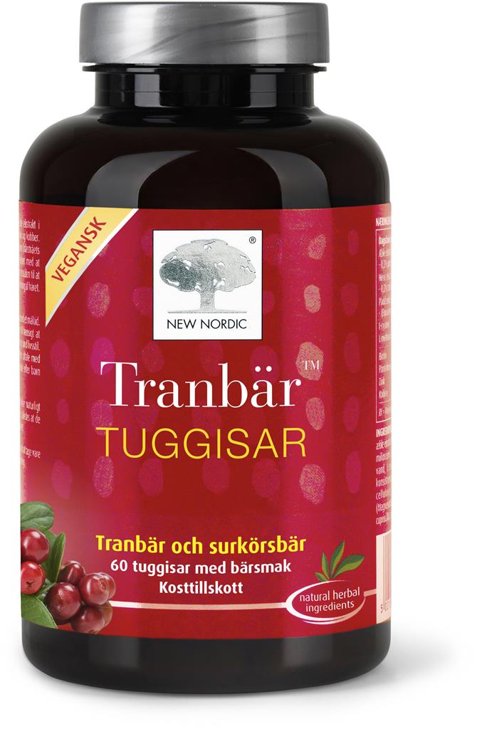 Tranbär Tuggisar är ett kosttillskott som är en välsmakande, vegansk geletuggis med innehåll av extrakt från tranbär och surkörsbär.