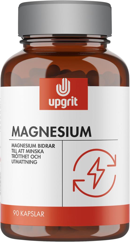 Upgrit Magnesium innehåller magnesiumbisglycinat, en form av magnesium som är bunden till aminosyran glycin. Magnesium bidrar till att minska trötthet och utmattning samt till elektrolytbalansen.