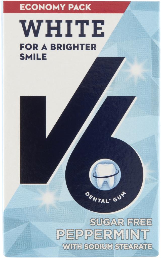 V6 White Peppermint, är ett sockerfritt tuggummi som