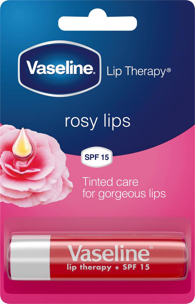 Vaseline Lip Therapy Rosy Lips ger dig 48H återfuktning och är kliniskt bevisad att läka torra spruckna läppar. Läppbalsamet har en formula av trippelrenat vaselinegelé, mandel- samt ros olja som ger dina läppar ett återfuktat glow och vacker svagt rosa nyans.
