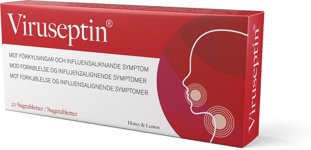 Viruseptin minskar spridning av virus som orsakar förkylning. Viruseptin sugtabletter innehåller det verksamma ämnet iota-carragenan (Carragelose®) som utvinns från rödalger och hjälper kroppens eget försvar att bekämpa virus i de övre luftvägarna. Det aktiva ämnet omsluter viruspartiklarna och förhindrar dem att fästa i mun och svalg vilket reducerar ökning och spridning av virus. Detta är en medicinteknisk produkt.