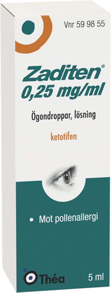 Zaditen, ögondroppar, lösning 0,25 mg/ml, 5 ml har tagits bort från mina favoriter