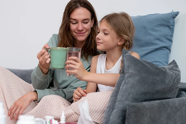 Det kan vara skönt att dricka mycket vid hosta, speciellt varma drycker som kan ge en lenande effekt i svalg och luftvägar. Slemmet i halsen tunnas ut och blir lättare att hosta upp. Prova att låta barnet sova med en extra kudde.