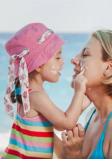 Det är viktigt att skydda huden mot solens UV-strålning, oavsett hudtyp och ålder. Barn har känsligare hud än vuxna och därför rekommenderar vi att små barn håller sig i skuggan med UV-dräkt när UV-indexet är högt.
