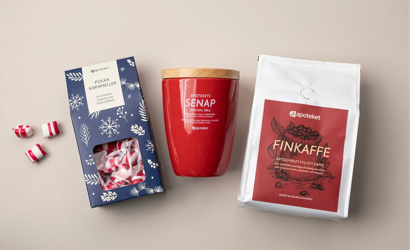 Apoteket Jul samlar utvalda produkter som ofta hör julen till. Här hittar du bland annat julgodis och choklad, saffran, pepparmyntolja, senap, te och aromatisk tinktur. Enkla favoriter att handla inför julens traditioner.