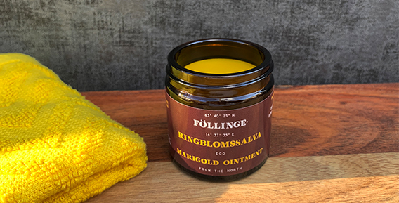 I Föllinges sortiment hittar du beprövade klassiker, som t ex Ringblomssalva Marigold Ointment, en rik salva för till torra, nariga händer, läppar eller fötter! Salvan är baserad på ringblomma som är en traditionell medicinalväxt med lugnande och lindrande egenskaper. Här har många av ringblommans nyttiga ämnen tagits tillvara och blandats med bivax, olivolja och eteriska oljor.