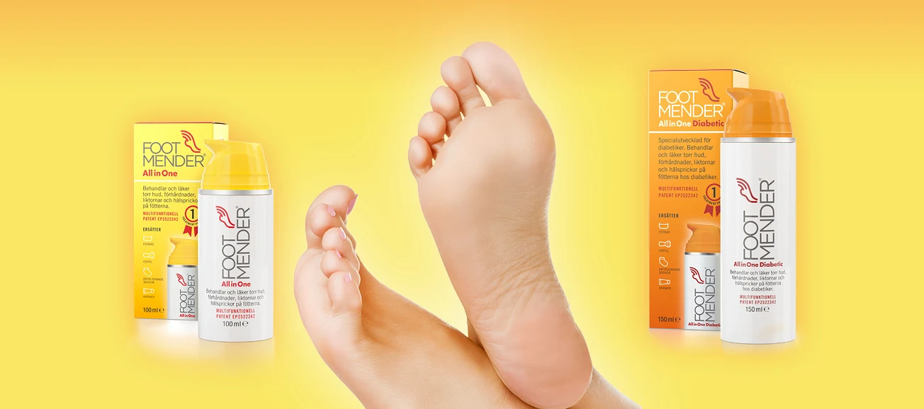 Innovativ och patenterad fotvård med Footmender All in One och Footmender All in One Diabetic (för dig som är diabetiker) ger dig det du behöver för att vårda torra fötter, förhårdnader, liktornar och hälsprickor.
