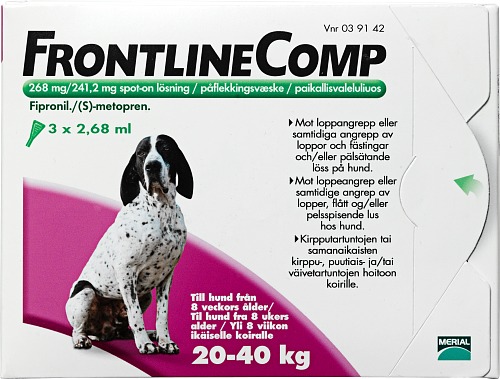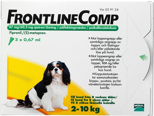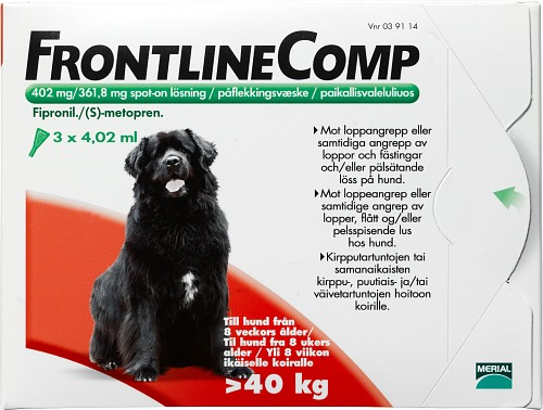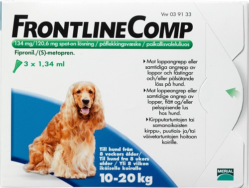 Frontline Comp och Frontline Vet är utvärtes lösningar som efter applikation sprider sig över katten eller hundens kropp, koncentreras i talgkörtlarna, och ”fyller på” husdjurets päls automatiskt. Behandla inte katter eller hundar som är yngre än 8 veckor.