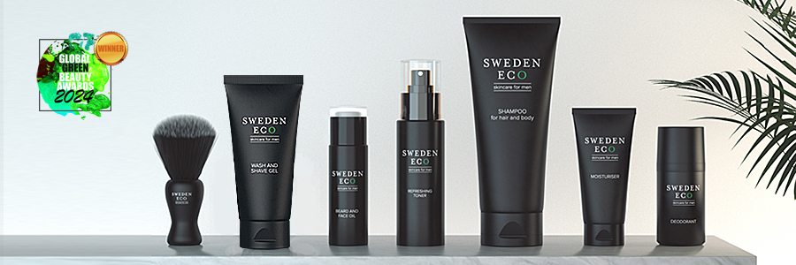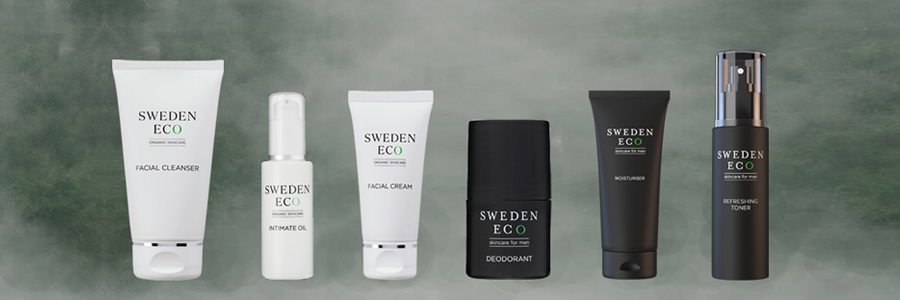Sweden Eco har tagit fram produkter som passar mäns hud och med fräscha unisexdofter. Svarta serien har en frisk och kryddig doft och produkterna gör rent lite djupare vilket passar mannens hud. Ansiktskrämen i den svarta serien absorberas lätt och innehåller ingredienser som motverkar ålderstecken, såsom hyaluronsyra och parakrasse. Det finns även en härlig skäggolja och en effektiv deodorant och ett schampo som passar både håret och kroppen.